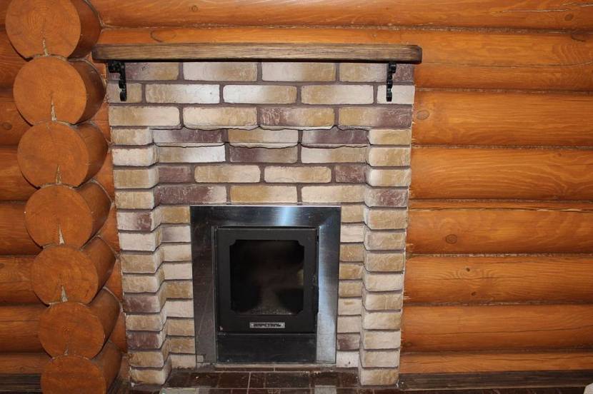 - Оборудуйте кирпичную кладку по периметру топливного канала, проходящего через бревна или брусья. Заполните получившийся зазор качественным теплоизоляционным материалом.