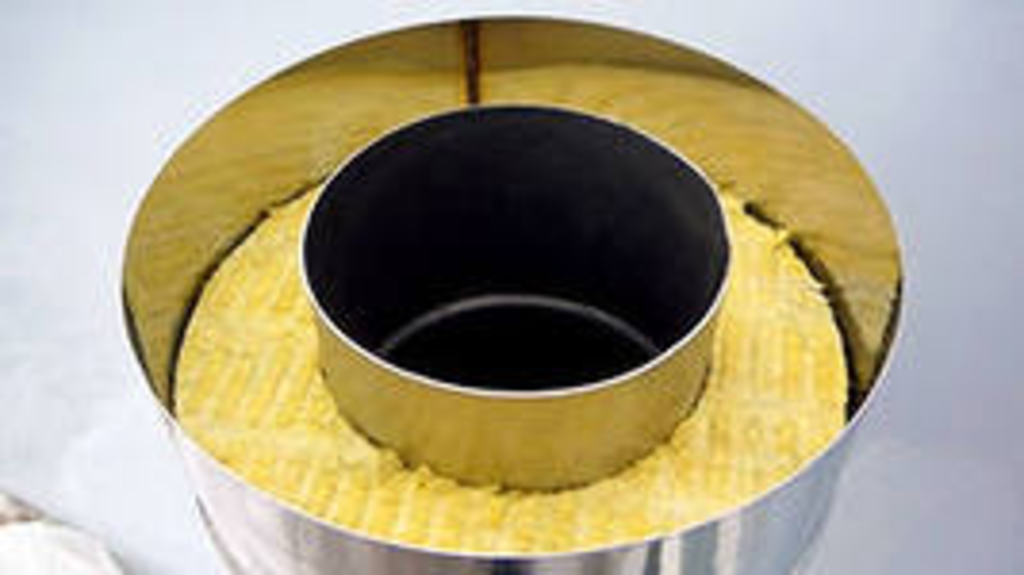 Как утеплить металлический дымоход? Для этого берем трубу меньшего диаметра и вставляем в трубу большего диаметра. Затем, оставшееся пространство между трубами засыпается любым из вышеперечисленных видов утеплителя. Если вас интересуют современные материалы, то можно вам посоветовать базальтовый утеплитель для дымохода, который по своей структуре напоминает минвату, но гораздо более практичный и долговечный.