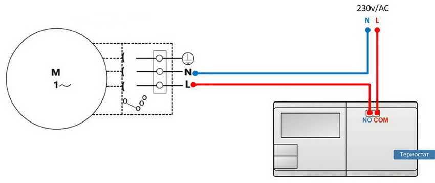 Терморегулятор выполняет задачу включение и отключения системы отопления при достижении заданной температуры автономно, без участия человека. Простая схема включает в себя два контакта, провода которых проведены к котлу и подключены к клапану.