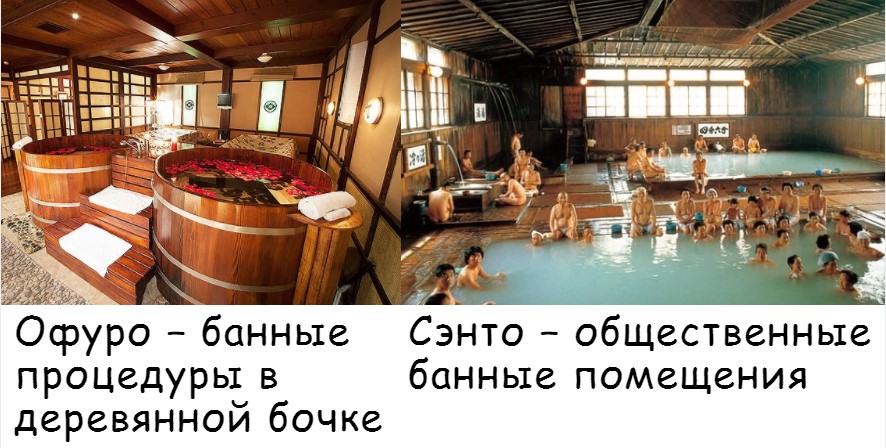 После своеобразного пилинга, японцы погружались в большой чан с горячей водой, где отпаривали свое тело и занимались медитацией. Таким образом, летом избавлялись от пота и пыли, а зимой такого рода процедуры являлись прекрасным методом защиты от переохлаждения и профилактикой всякого рода заболеваний, ведь шкуры и шубы также были чужды убеждениям веры. Неизменное купание в таких бочках стало частью национальной культуры, которая и сегодня является гордостью и особенностью Японии.