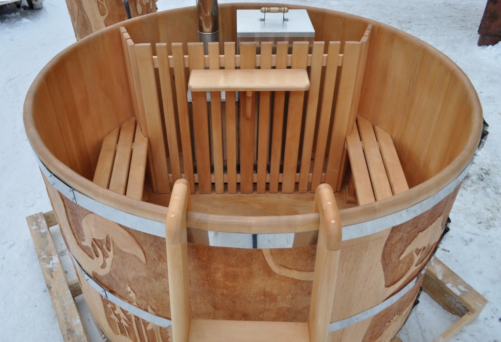 Фурако – это конструкция в виде бочки, разделенной на две части. В большей из них размещены сидения и туда подается нагреваемый наполнитель для принятия процедур, а в меньшую встраивается печь (электрическая или дровяная), которая будет разогревать воду до температуры в 45-50 градусов по Цельсию. Для первых посещений это чересчур высокая температура, но в дальнейшем организм адаптируется.