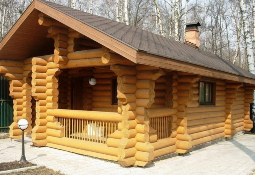 Баня из оцилиндрованного дерева с террасой