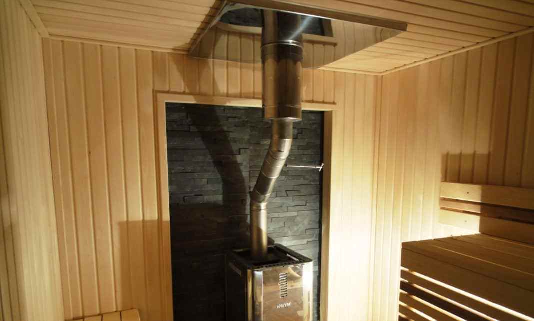 Для дополнительного обогрева смежного с парилкой помещения в их перегородке выполняется отверстие D=100 мм под гофрированную металлическую трубу, оборудованное вентиляционной решеткой. Размещается оно возле печи ближе к полу.