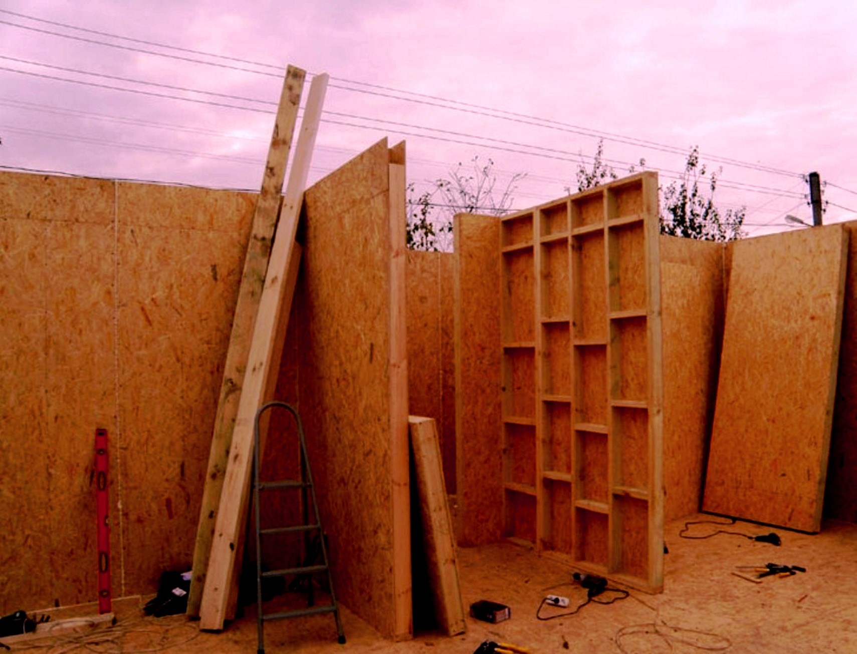 - Плиты ОСП не выдерживают продолжительного пребывания на солнце — ультрафиолет разрушает синтетические смолы, скрепляющие стружку. После постройки желательно сразу защитить наружные стены финишной отделкой.