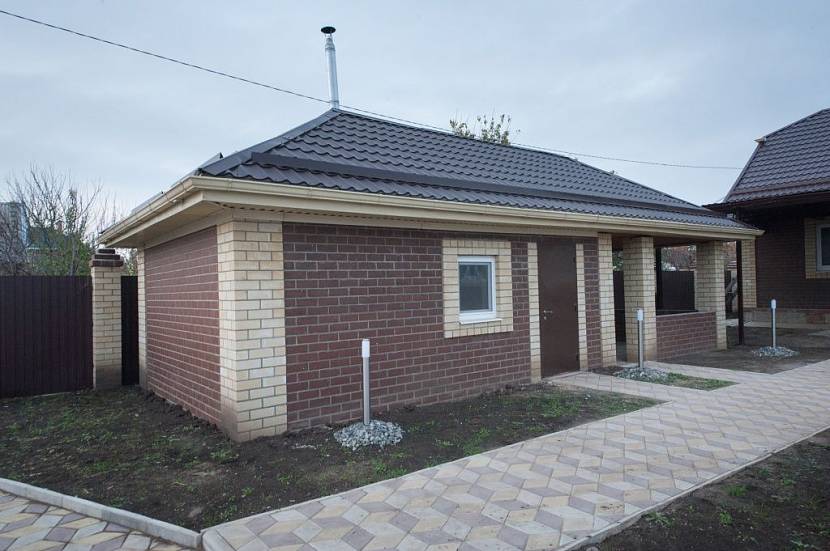 Более дешевым материалом для стен бани является кирпич или блоки из ячеистого бетона. Из преимуществ таких бань можно выделить простоту в обслуживании, огнестойкость, хорошие, но недостаточно высокие теплоизоляционные свойства, вследствие чего такие стены требуют дополнительного утепления. Кроме проведения дополнительной теплоизоляции стен, изнутри их необходимо тщательно загерметизировать, ввиду высокой влагопоглощающей способности.
