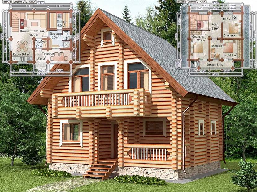 Бани с террасой аналогична предыдущему варианту, но выполняется с террасой. Она дает возможность отлично отдохнуть всей семьей.
