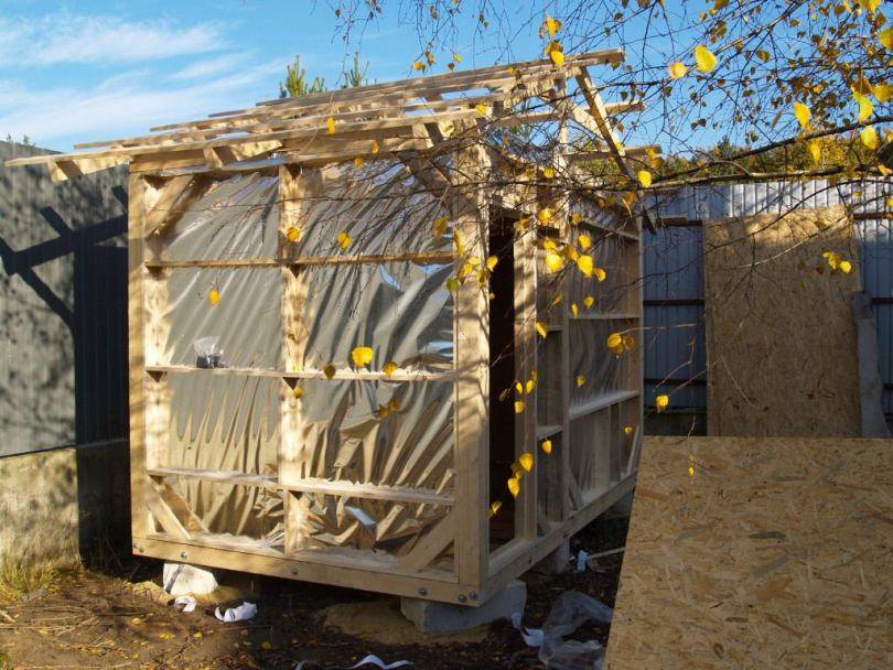- Строительство своими руками бани на даче включает в себя качественную внутреннюю изоляцию каркаса. Теплоизоляционный материал укладывается в его подготовленные ячейки. Мембрана ПЕНОФОЛ закрепляется на стойках, обращенная фольгой в помещение бани. Герметизация стыков изоляции производится клейкой фольгированной лентой. Для отражения тепла внутрь помещения металлической стороной изоляции необходим воздушный зазор. Он обеспечивается так же, как при монтаже мембраны ИЗОСПАН.