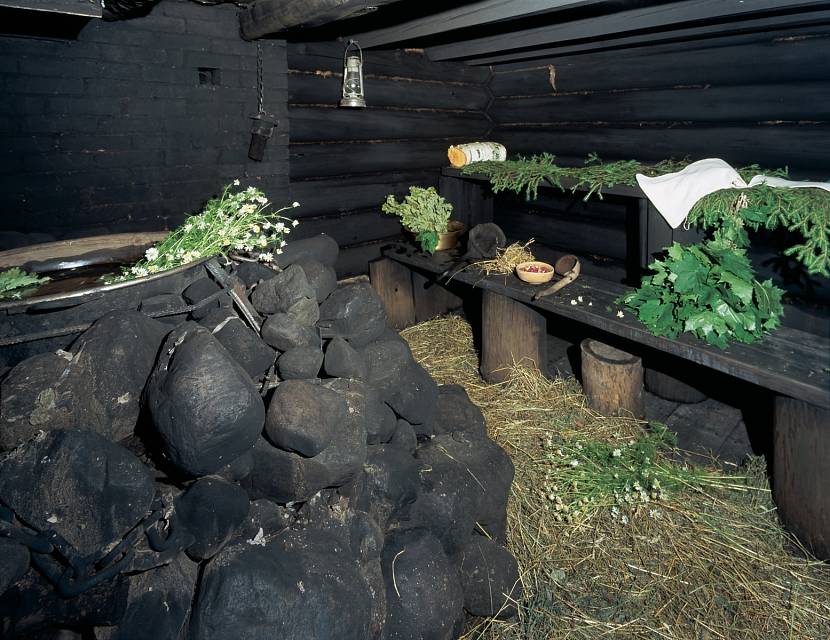 Старорусская баня по-черному становится популярной не только в России, но и во всех странах, где существует «банный культ». Так, например, финны тоже стали следовать нашим традициям. Теперь у них в парной также котел устанавливается в центре, вверху — емкость с водой, внизу — дрова, дым отводится через каминную трубу. Окна они тоже стали делать пониже, где-то не уровне очага, отчего закопчения не происходит. Полки для парения располагаются очень высоко.