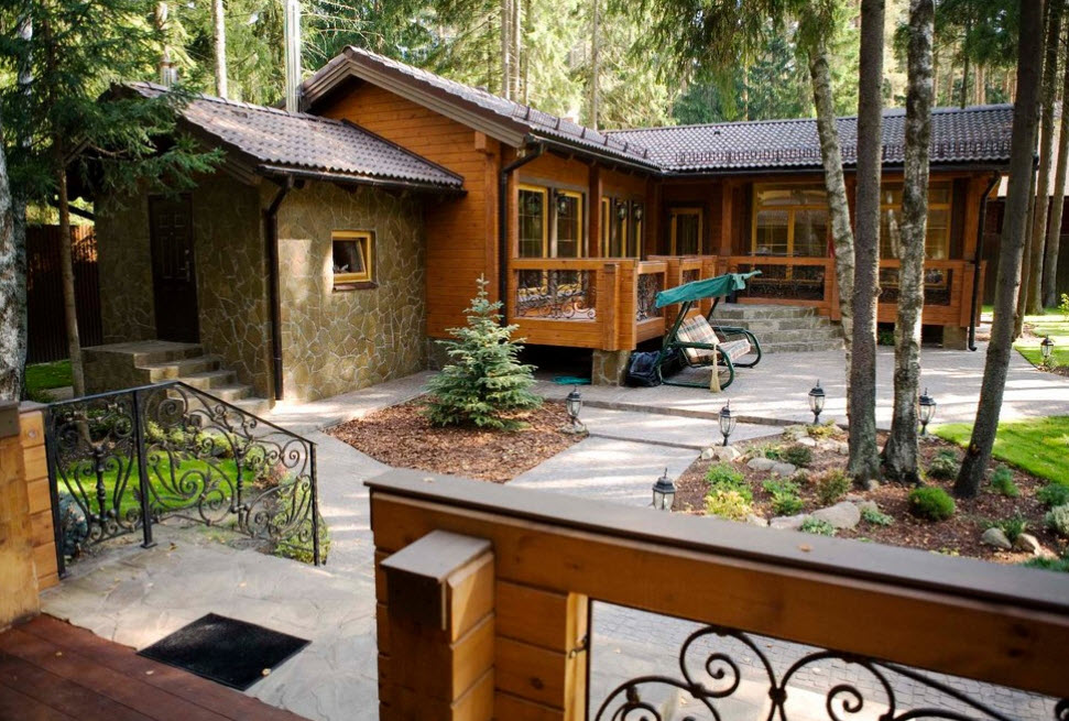 - баню с беседкой можно совместить с дополнительными строениями, расположенными на участке. Например, отлично смотрится небольшой гостевой домик, который в летнее время станет автономной территорией, пригодной для жизни приезжающих друзей или родственников;
