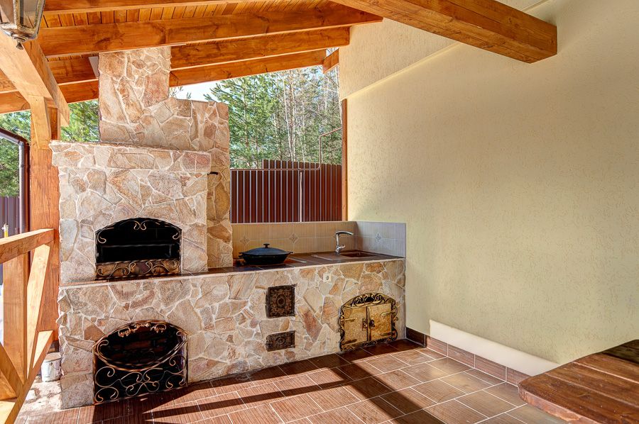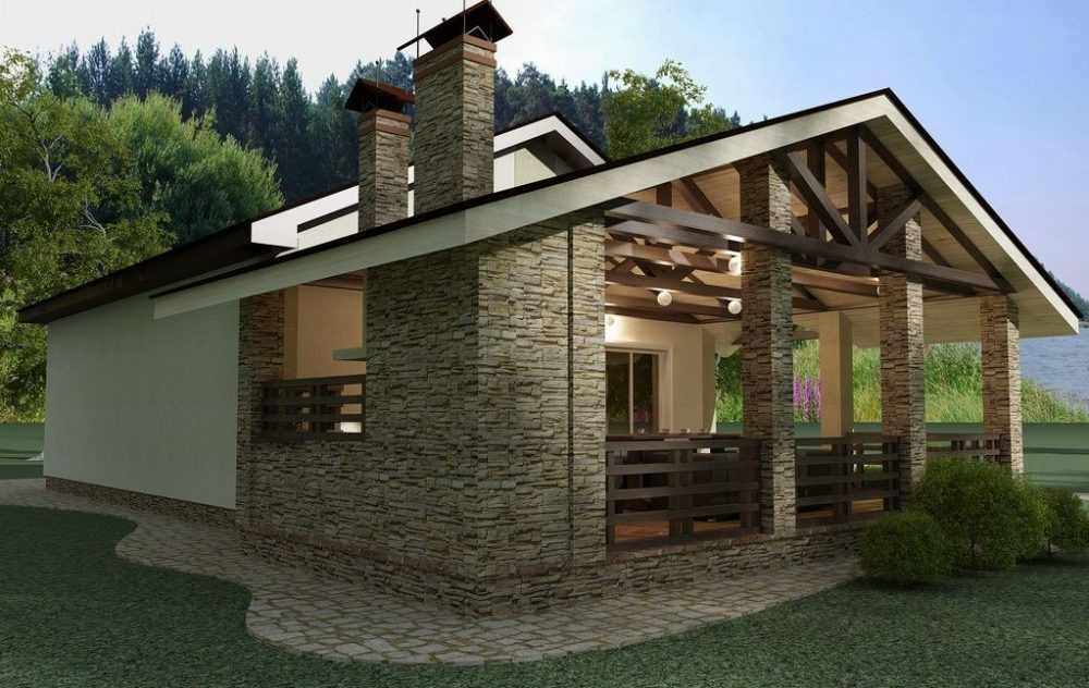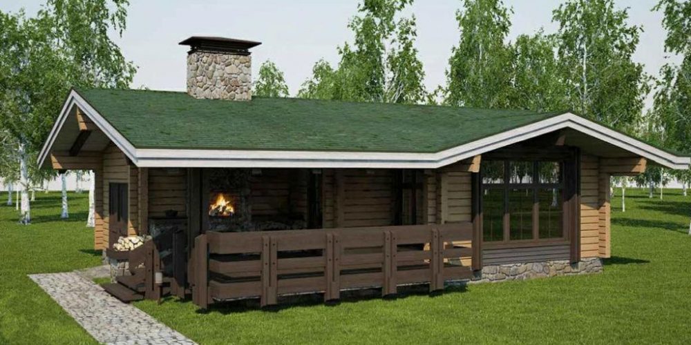 Проекты бань с террасой и барбекю: фото разных вариантов