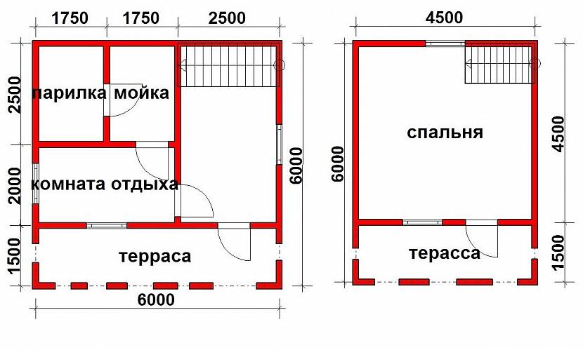 Даже типовые проекты зданий могут различаться между собой габаритами и внутренними планировками. Чаще всего владельцы дачных участков, ввиду отсутствия свободной площади, отдают предпочтение именно компактным строениям. По этой причине наиболее востребованными считаются проекты бань с мансардой 6х6 м и 4х6 м.