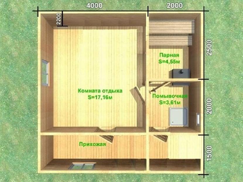Оптимальный размер бани с комнатой отдыха