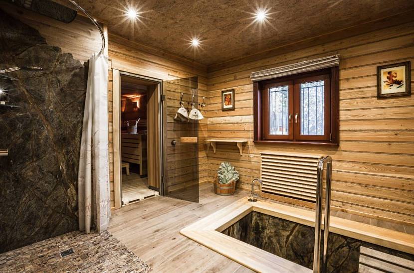 - Душевая, душевой уголок и туалет – всё это даёт возможность продлить процесс парения на несколько часов.