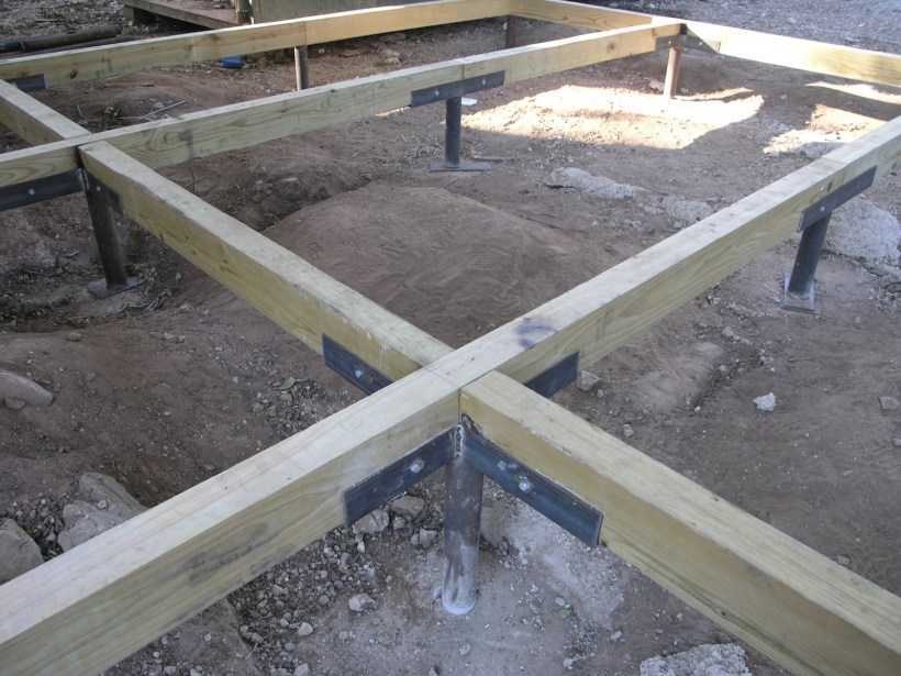 Но с учетом небольшого веса общей конструкции допустимо применение столбчатого фундамента. Для его возведения не требуется большого количества стройматериалов, к тому же их ассортимент может быть достаточно широк – от изолированных бревен до металлических свай в бетонных столбах. В данном примере рассматривается последний вариант.