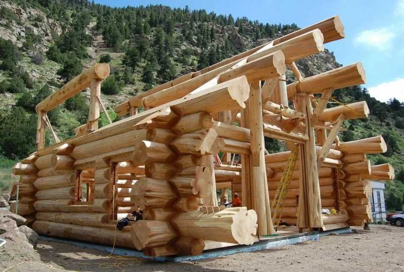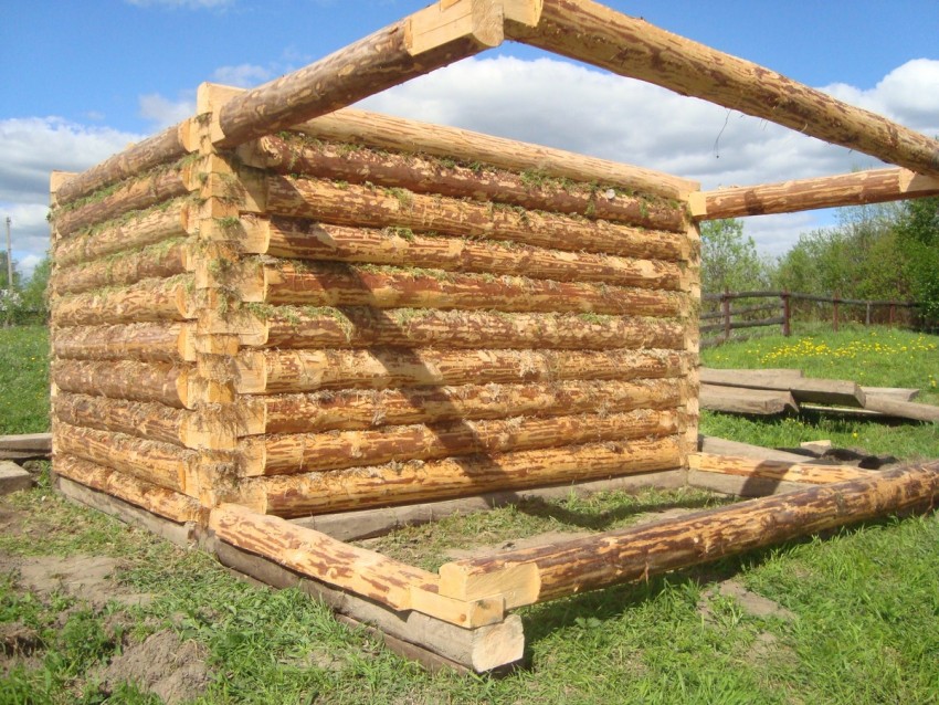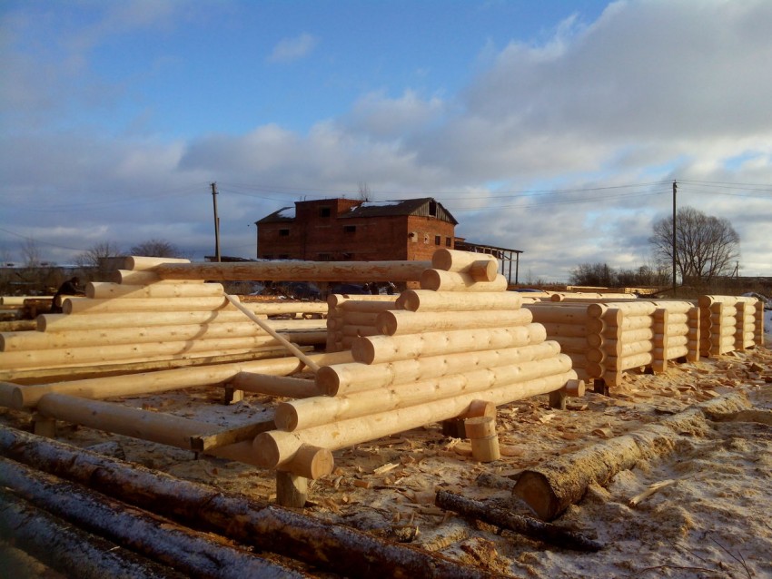 Дополнительное утепление не надо. Дерево слабо реагирует на перепады температур. Обработанные брёвна подготавливаем для рубки стен. Выбираем вариант рубки в чашу или лапу. Нарезаем по размеру материал. Топором вырубываем углубление по длине бревна.