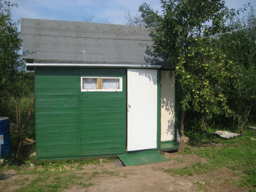 Второй вариант наиболее распространенный. В этом случае строение выносят на максимальное удаление от дома, желательно ближе к кустарниковым или древесным насаждениям, закрывающим коробку от ветра.