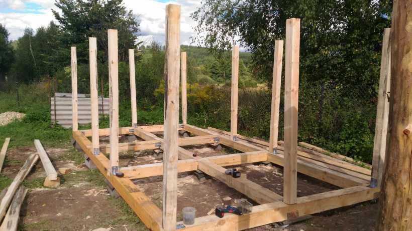 Поверх установленной основы в углах оборудуются опорные основания с деревянной доски, сбитой под 90 градусов. Затем в зависимости от выбранной тактики проводится следующий этап – установка каркаса. Он может устанавливаться по двум технологиям.