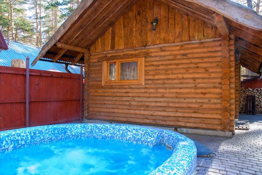 В случае если их нет, и бассейн предполагается разместить рядом с баней, разумно построить ее так, чтобы она хорошо просматривалась из окошек дачного домика. Так будет возможность присмотреть за топящейся баней и за детьми, гуляющими неподалеку от бассейна.