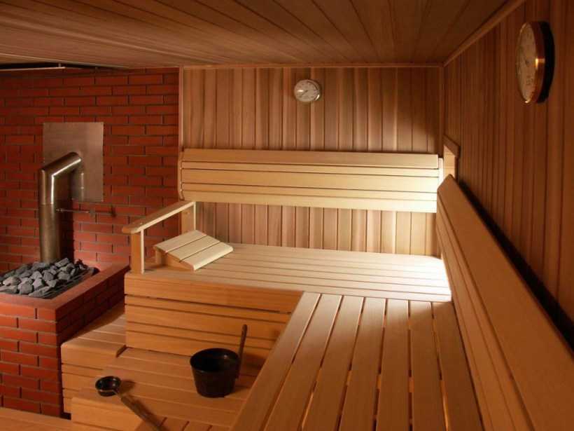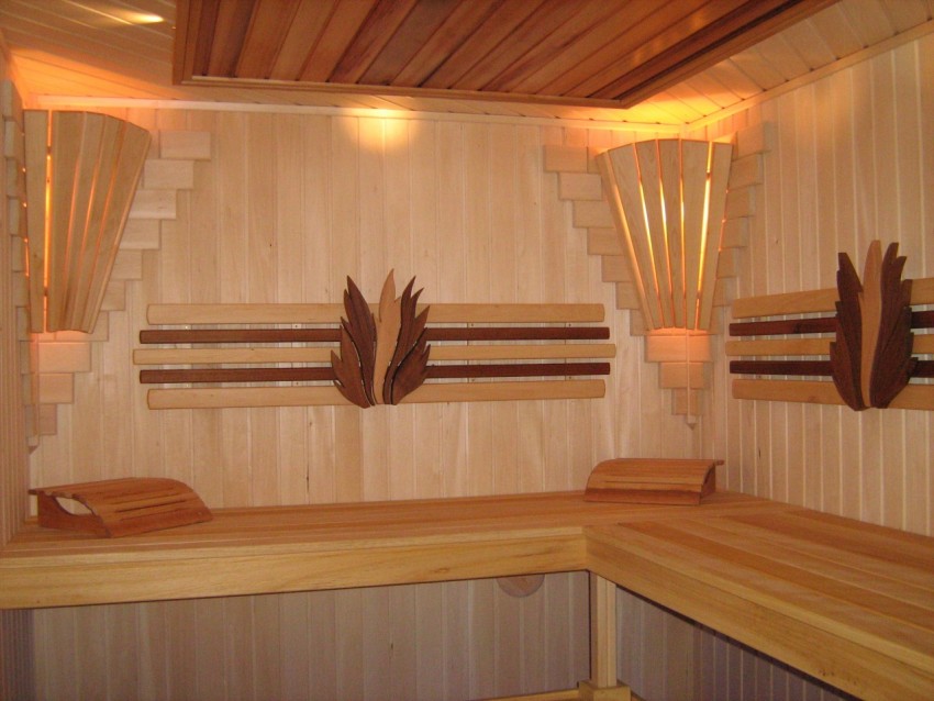 Отделка бани изнутри чаще всего производится с помощью дерева. Но необходимо правильно выбрать материал, так как внутри помещения при высокой влажности возникает высокая температура. Категорически не рекомендуется использовать линолеум, ДСП и ДВП