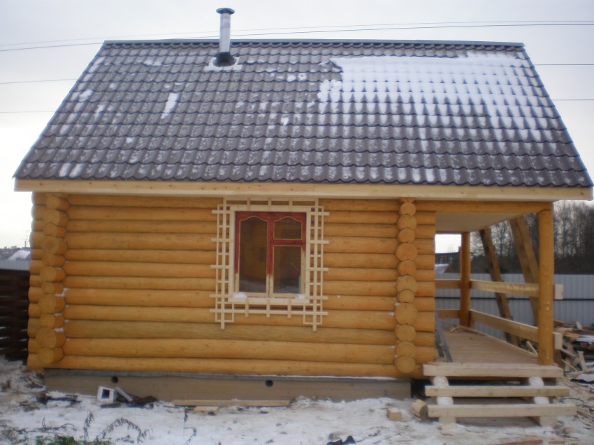 Вариант по сравнению с каркасной парилкой является затратным. Кроме того, придется сделать фундамент более прочным. Однако добротная деревянная баня не будет нуждаться в утеплении.