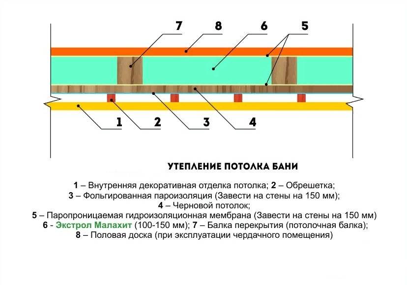 Подшивная модель считается самым распространенным вариантом банных перекрытий — Баня утепление потолка пароизоляция