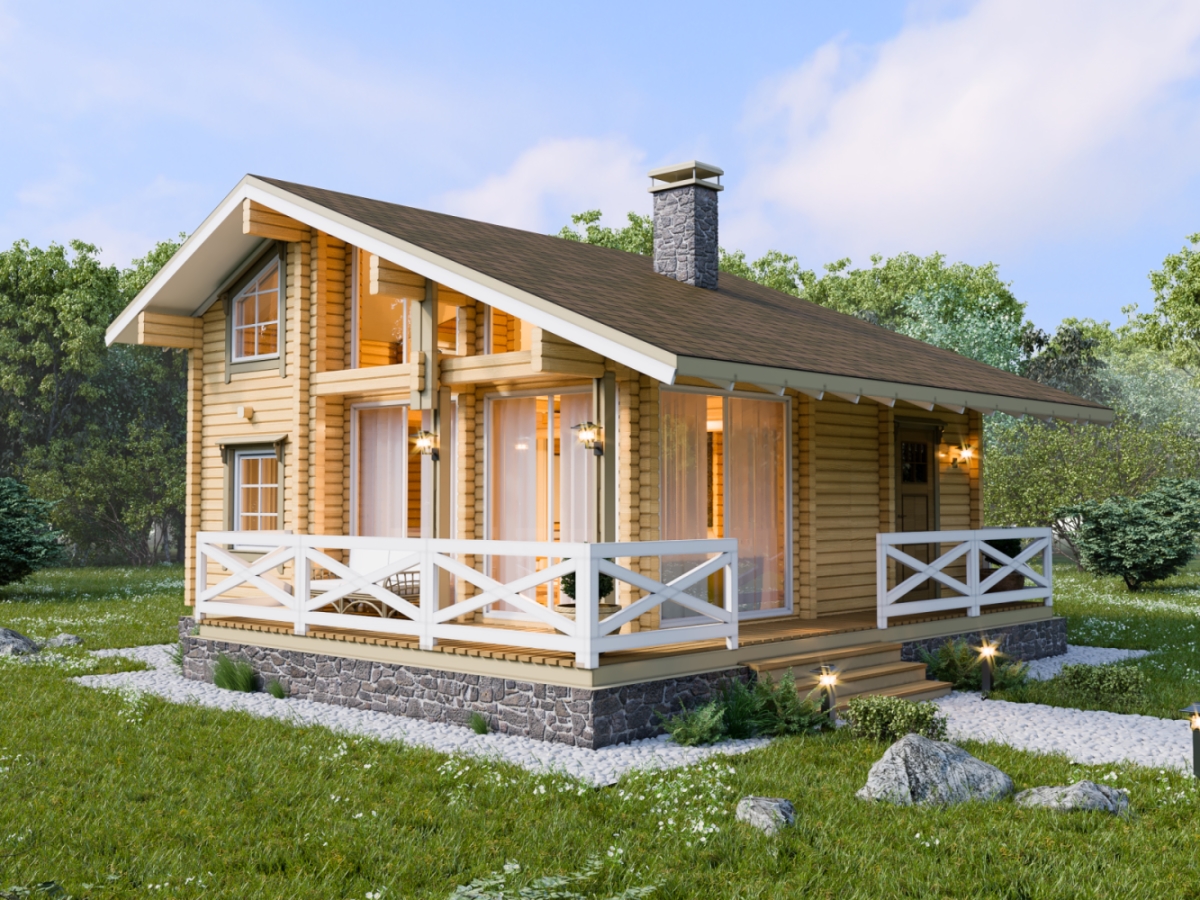 Одна из главных особенностей – это применение натуральных материалов, для постройки дома на многие десятки лет. Натуральный камень, из которого состоит фундамент, имеет ценность не только в практическом смысле, но и в эстетическом. Блеск камней на свету, их разная форма, шероховатость и неровность, которую можно потрогать руками, очень сильно сказывается на атмосфере, в какой-то мере сближая с природой. А массивные элементы из дерева, применяющиеся на этажах, представляют собой величественный и успокаивающий вид.