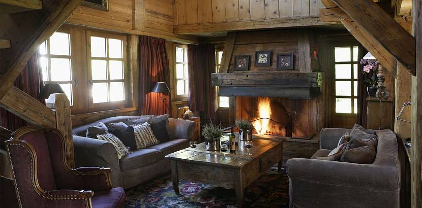 Стены в таких помещениях чаще всего бывают деревянными или оштукатуренными. Украсят такую постройку и выступающие потолочные балки. Для шале (как и для английского стиля) характерно наличие большого камина. Возможно, это связано с тем, что пастухи часто сидели у огня, спасаясь от непогоды.