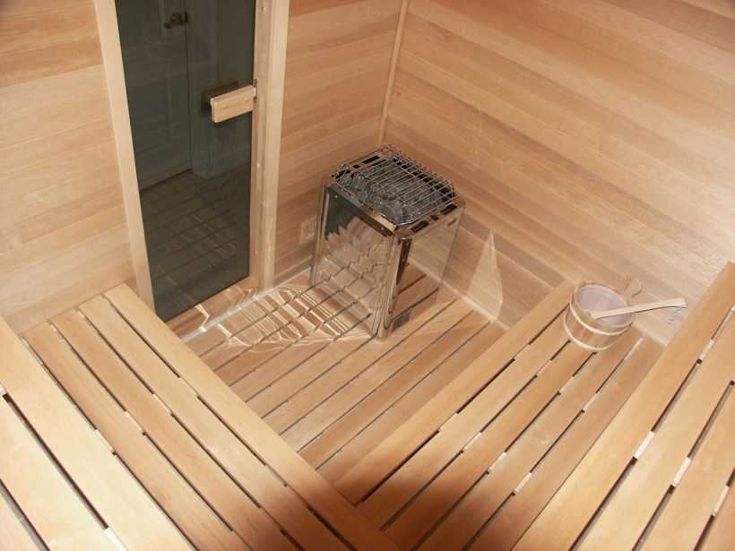 - Финская сауна. Высокий температурный режим и сухой пар. Желательно иметь в распоряжении подвесное ведро или купель для проведения контрастных водных процедур.
