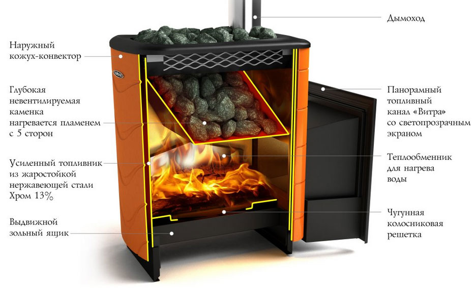 - конструкция для наполнения камнями с целью увеличения тепловой отдачи;
