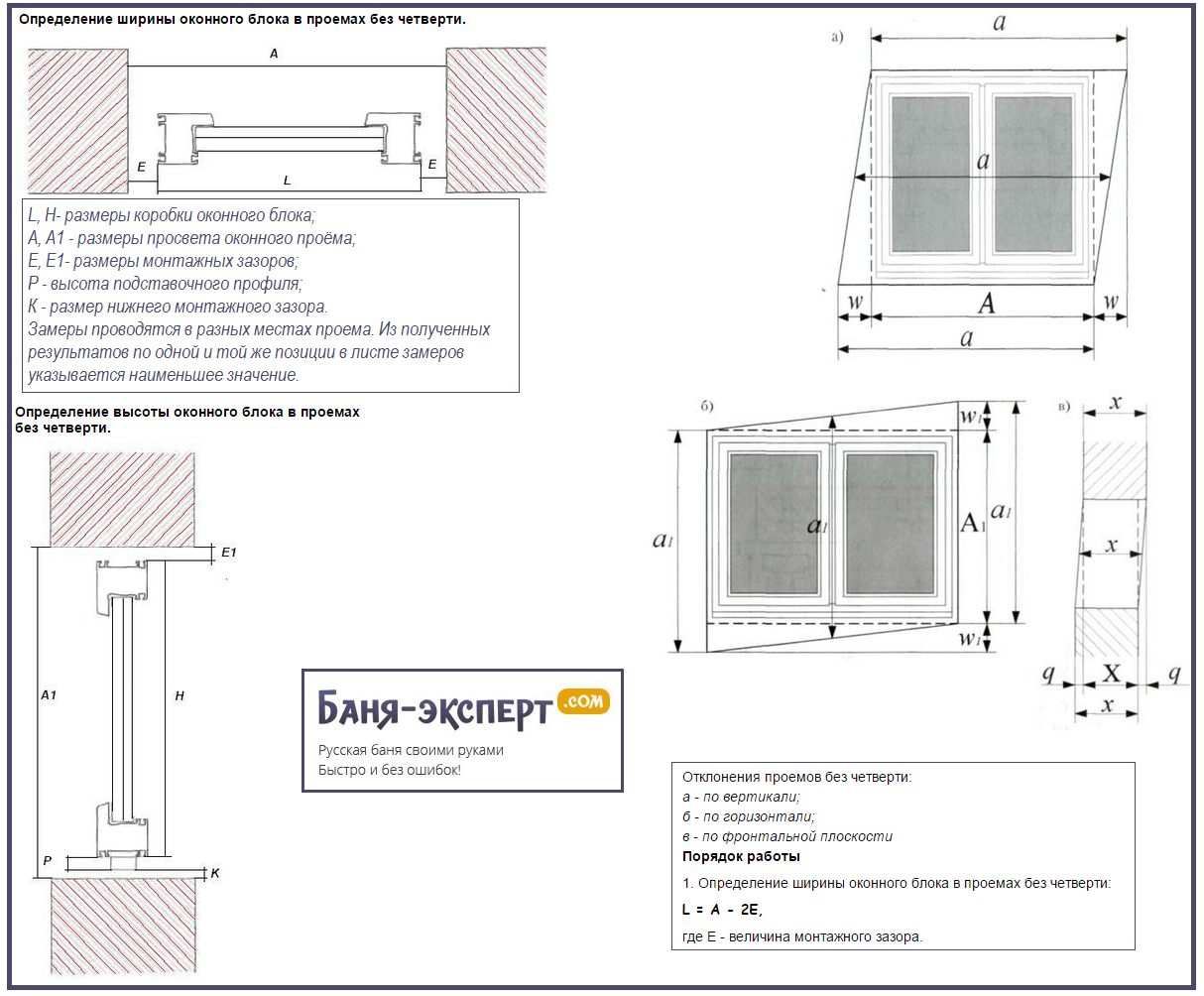 Для начала замеряются проемы, важно предусмотреть 1,5-сантиметровые зазоры для запенивания, а также 3,5 см снизу, где будет располагаться подоконник. При монтаже рамы необходимо учитывать не число камер профиля, а размеры и тип материала, из которого создавалась баня