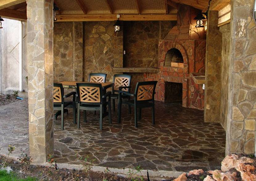 - 2 зоны отдыха — под крышей и снаружи, по сути, это позволяет вам свободно передвигаться по довольно просторной территории, что очень удобно, если собралась внушительная по численности компания.