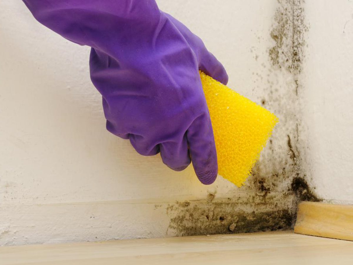 - голые стены смачивают водой, чтобы споры плесени не разлетелись по комнате;