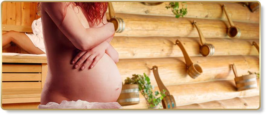Беременность не является препятствием для посещения бани. В парной у женщины проходит усталость, улучшается циркуляция крови, что помогает избежать тромбозов и головных болей, уменьшаются отеки. Однако необходимо избегать посещения бани в первом триместре беременности, так как именно в это время происходит перестройка женского организма.