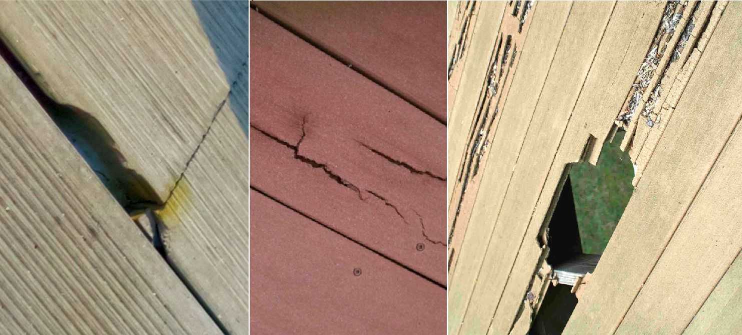 Несмотря на все достоинства, недостатки древесно-полимерной террасной доски также заслуживают внимания. Прежде всего, необходимо учитывать уязвимость к ультрафиолетовым лучам, вызывающим пожелтение и изменение цвета, а также возможное коробление вследствие нагрева. В процессе эксплуатации на поверхности нередко образуются трещины и сколы. Высокая стоимость и необходимость использования оригинальных комплектующих при монтаже, также можно отнести к существенным недостаткам данного материала.