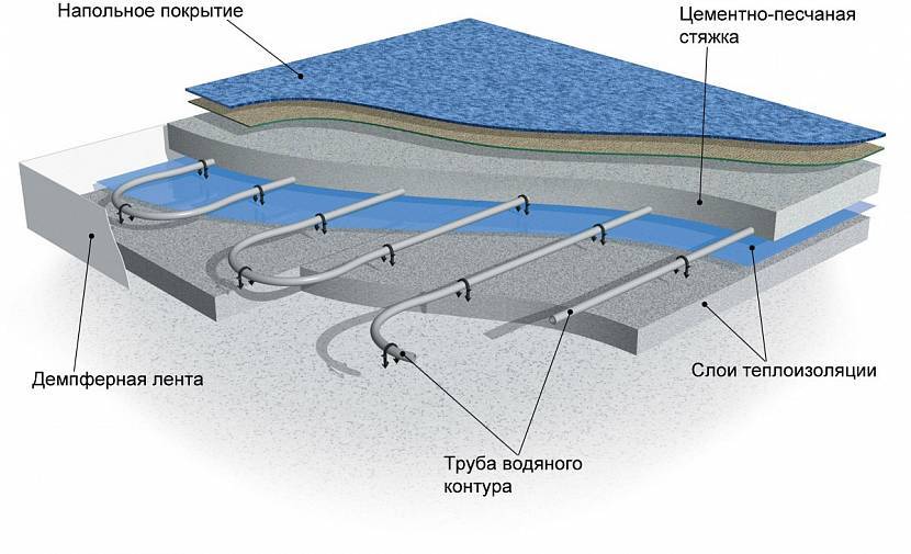 Также сразу поверх системы подогрева — без укладки гипсоволокна — может быть залита бетонная стяжка. Обычно это цементно-песочный раствор с добавлением пластификатора. Последний необходим для того, чтобы смесь была пластичной, но плотной. Благодаря пластификатору, поверхность пола получится более гладкой.