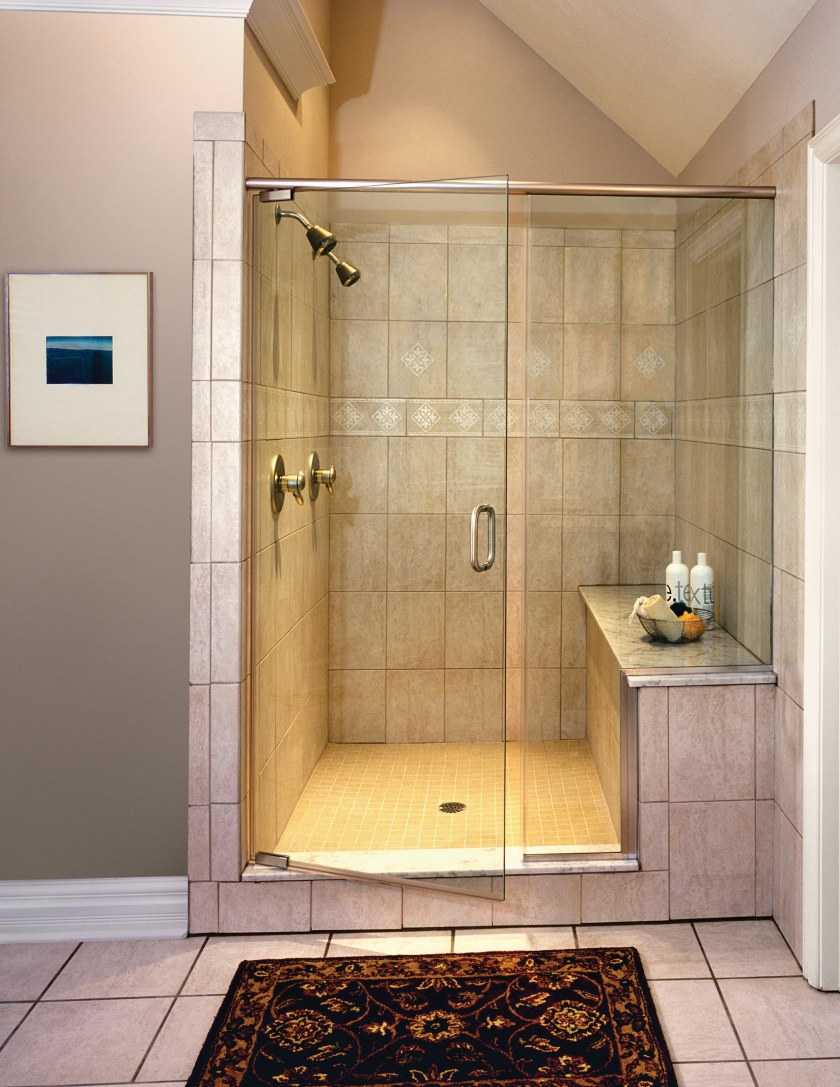 На этапе строительства легко предусмотреть различные полочки или ниши для размещения всевозможных шампуней, гелей и других гигиенических принадлежностей или соорудить небольшой стул, облицованный плиткой.