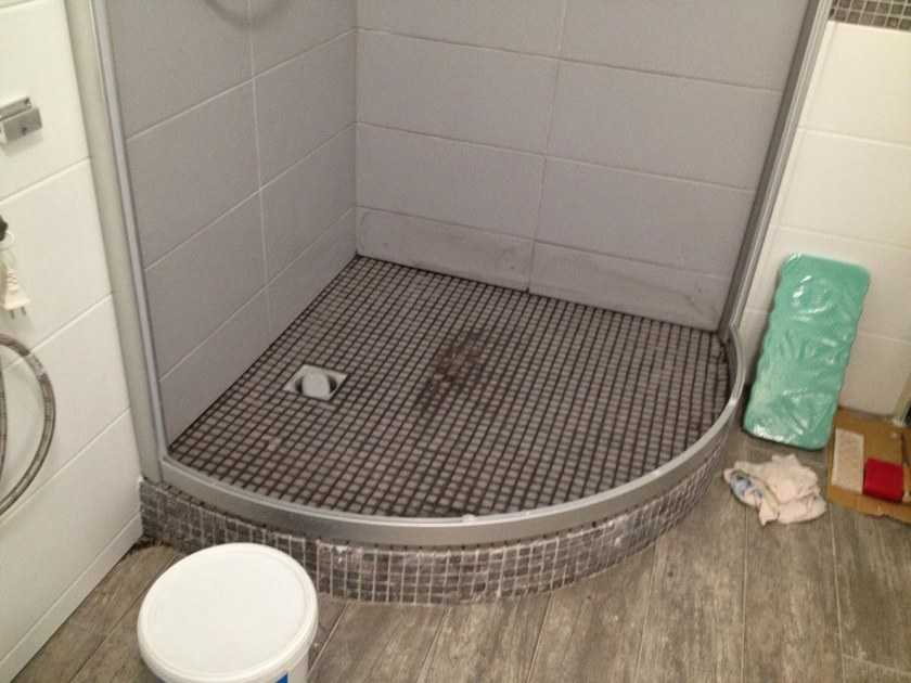 На поддон лучше всего укладывать целую плитку или мозаичные листы