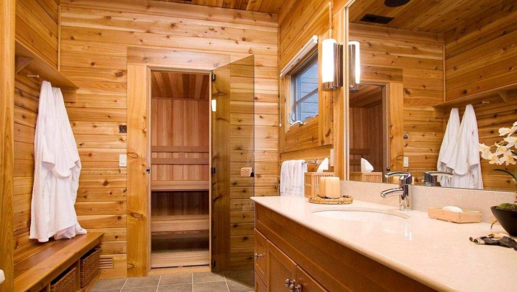 Еще один плюс – увеличение одновременно и уровня освещения парной, и визуального пространства. Многие радуются тому, что в маленькой парилке исчезает клаустрофобическое настроение.