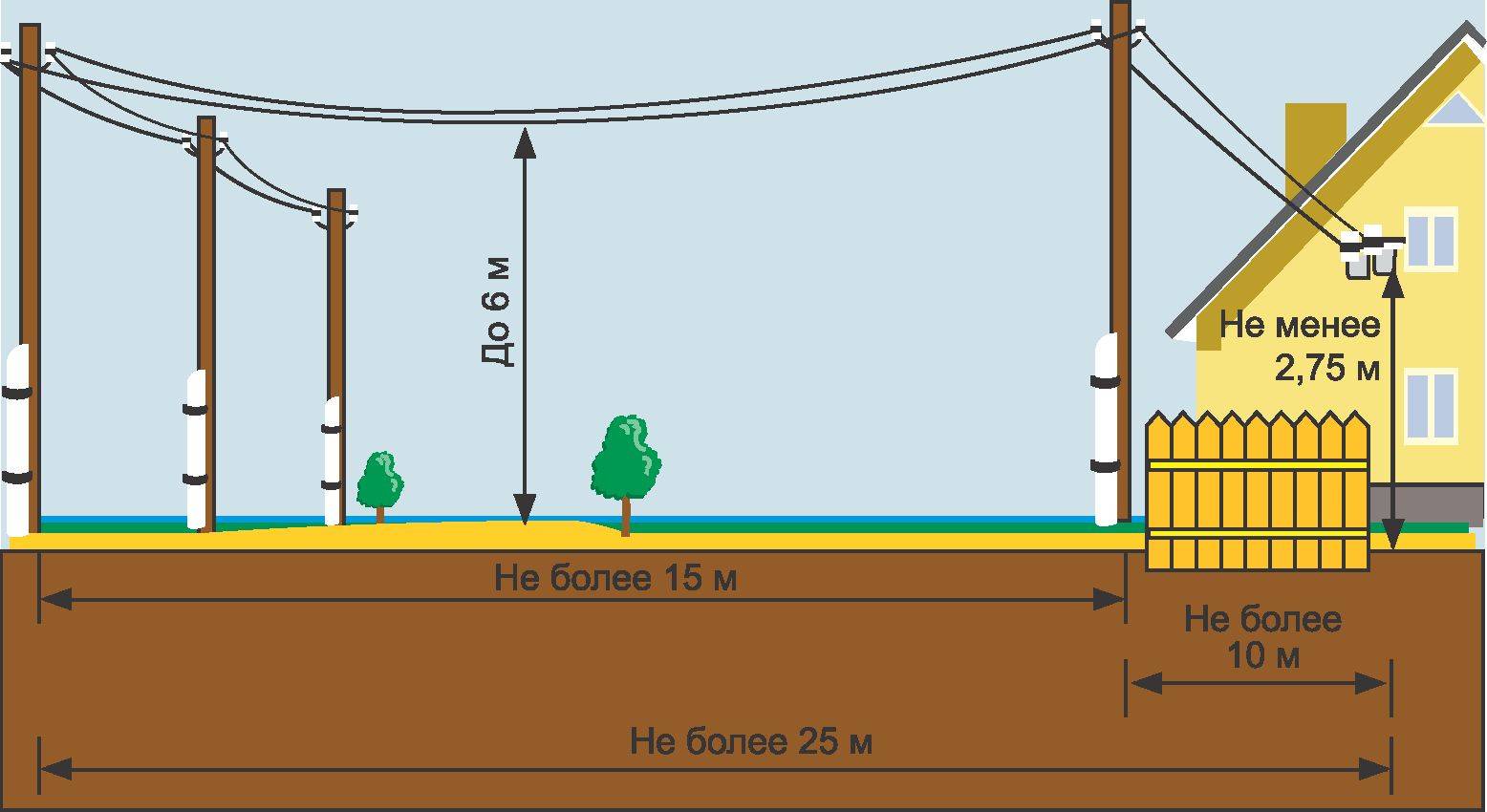 Перед началом монтажа проводки необходимо ознакомиться с нормативной документацией, в которой указывается высота проведения высоковольтных линий. Ее величина не должна быть менее 600 см, если она будет проходить над проезжей частью. При установке высоковольтных проводов над пешеходными тропами — допускается высота более 350 см. В местах крепления провода к бане — от 275 см.