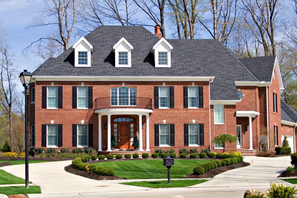 - Оттенки красного. Обычно считаются слишком яркими, потому нежелательными, но приглушенные варианты, вроде кирпичного, вполне отвечают классическим представлениям о загородном доме.
