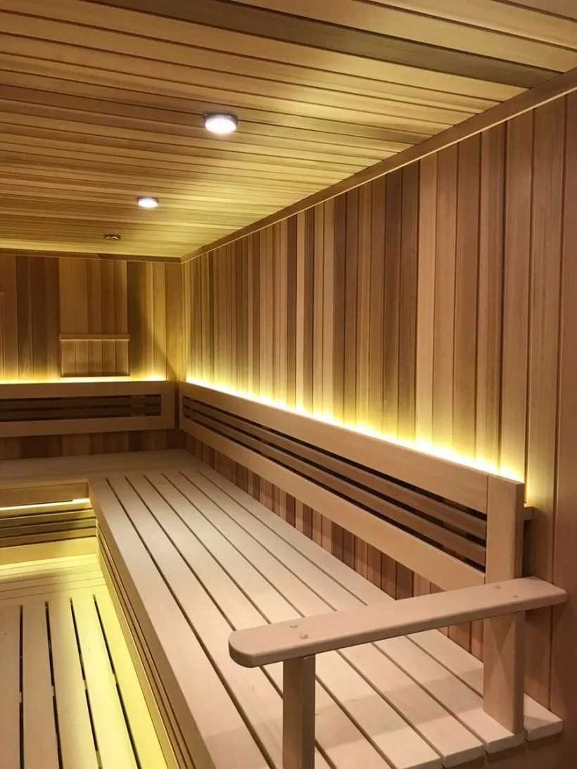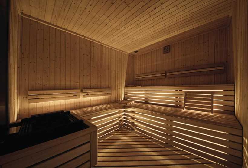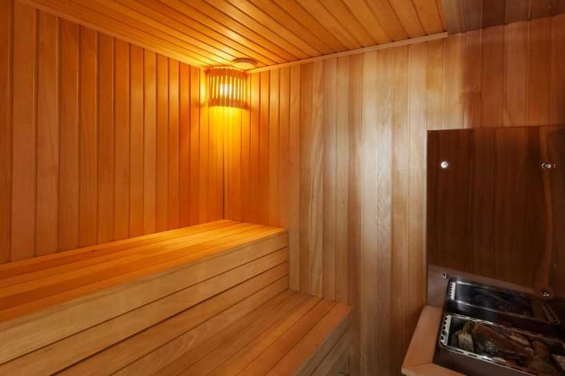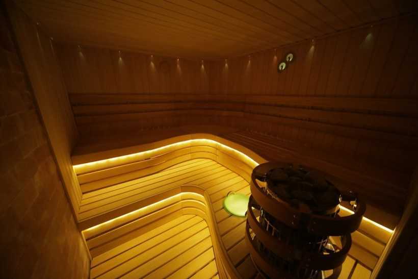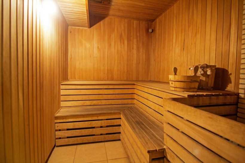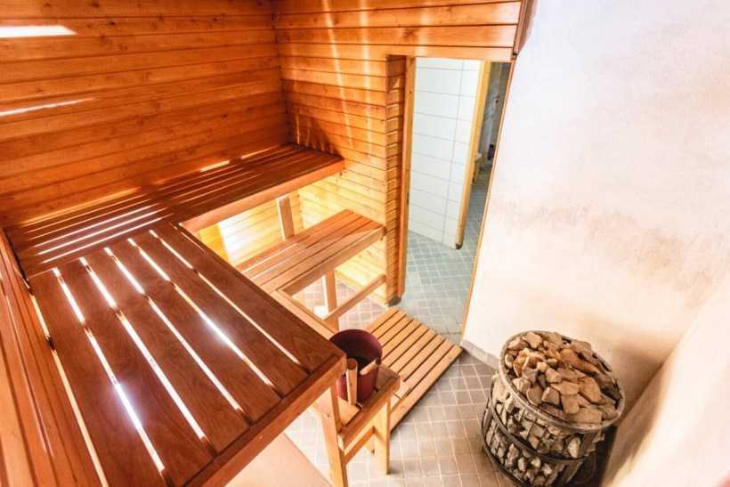 Финская сауна – это низкое деревянное помещение, в котором находится несколько лежаков. Встроенный термостат регулирует температуру внутри комнаты. Сочетание высокой температуры и незначительной влажности вызывает выделение пота, что является полезным для организма человека. После быстрого прогревания люди окунаются в холодную воду. Это обеспечивает эффективное закаливание и снижает риск простудных заболеваний.