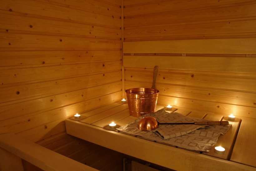 - Финская сауна не предполагает использования свечей и благовоний, здесь редко можно увидеть привычные русским атрибуты. Обычно в парилке приглушенное освещение и полностью отсутствуют посторонние запахи. Можно уловить легкий древесный аромат, дополненный березовыми вениками.