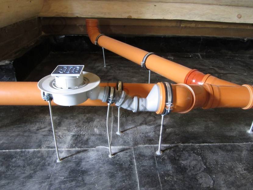сборке канализации в уже использующихся банях. Пол разбирают, делают