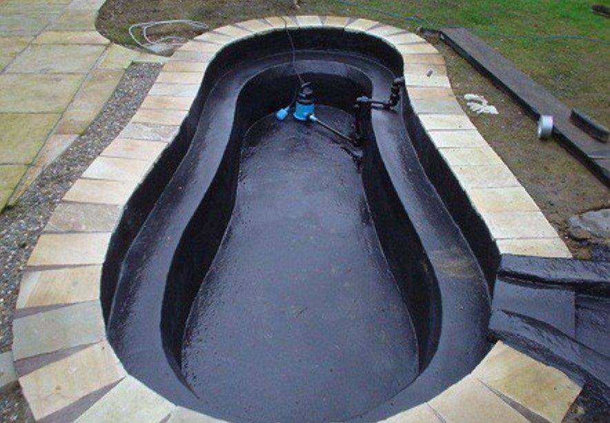 После нанесения жидкой резины на стены конструкции, влага испаряется при помощи водопоглощающего компонента, в итоге получается эластичный и очень плотный осадок, который похожий на каучук. Когда масса затвердеет, бассейн промывается и заполняется водой для выхода хлористых солей из гидроизоляции.