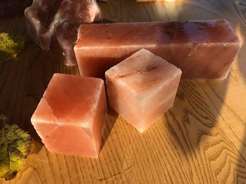 Кристаллы минерала розового цвета размером примерно 2-3 см. Для строительства бани или сауны используют соляные кирпичи, гальку, плитки или блоки. Более дорогим, но надежным материалом считается кирпич. Галька представляет собой крупную россыпную солевую крошку. Ее выкладывают на раскаленные камни в парилке сауны или бани и поливают водой – так она наиболее эффективна и полезна.