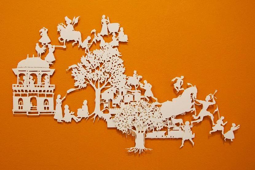 Бумагопластика довольно популярна. Она помогает скрыть все изъяны на стенах просторных гостиных. Также может использоваться как декор перегородок лестничных пролетов в зале или холле. Красивые фигуры: цветы, спирали, вензеля изготавливаются из плотной бумаги. Карандашом превращаются в объемные реалистичные аксессуары.