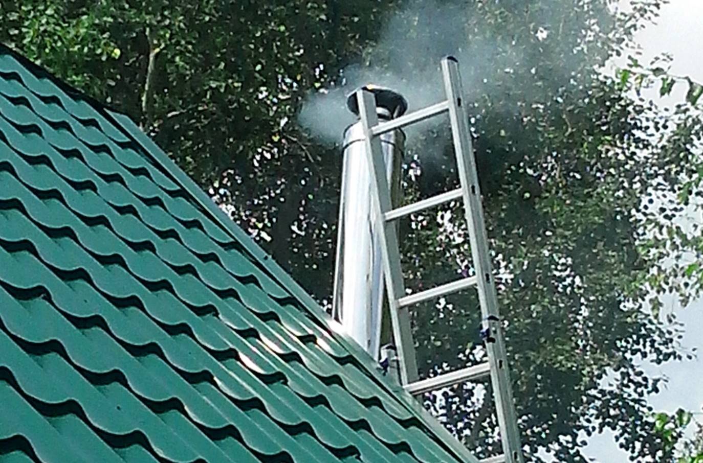 Совет: если материал вашей кровли относится к легко возгораемым, прикрепите вокруг печной трубы специальную пластину из металла, на которую будут падать искорки, которые смогут пройти через сетку.