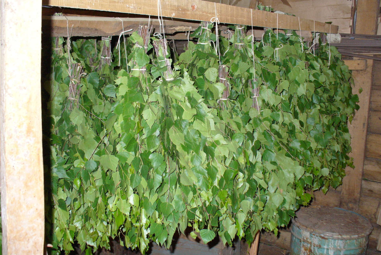 Чтобы веник сохранил свой аромат, необходимо правильно высушить его. Для этого прекрасно подойдёт сухое прохладное помещение. Готовые изделия развешивают по его периметру и дают им хорошо просохнуть в течение 1-2 недель. После этого упаковывают в целлофановые пакеты.