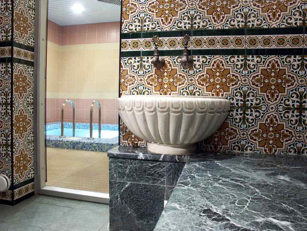 Существует множество разновидностей плитки, подходящей для использования в банях, саунах, хаммамах. Среди них можно выделить огнеупорные, жаропрочные керамические изделия, прекрасно подходящие для отделки нижней части стен и облицовки печи. Интересно выглядит плита под камень в отделке пола, впрочем, красивые натуральные минералы и горные породы сегодня тоже продаются в виде штучных изделий, стоят не слишком дорого. Ярким примером такой доступной отделки можно назвать талькохлорит и змеевик.