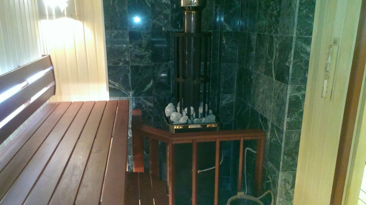 Керамогранит широко применим в напольных и настенных покрытиях бани. Его можно использовать при отделке стен печи. К преимуществам можно отнести: